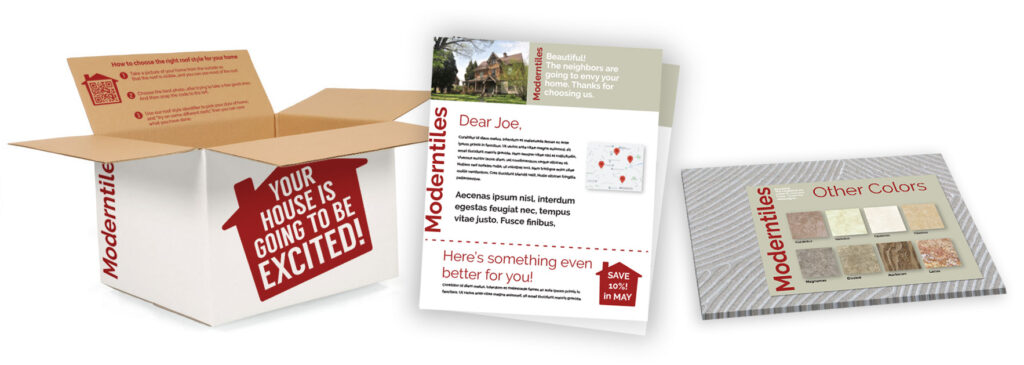 - The interior is an opportunity too. The inside lid of the box could offer printed instructions on how to perform your own “at-home try on” or offer 3-step instructions on how to choose the right product for the prospects project and how to start the buying process.